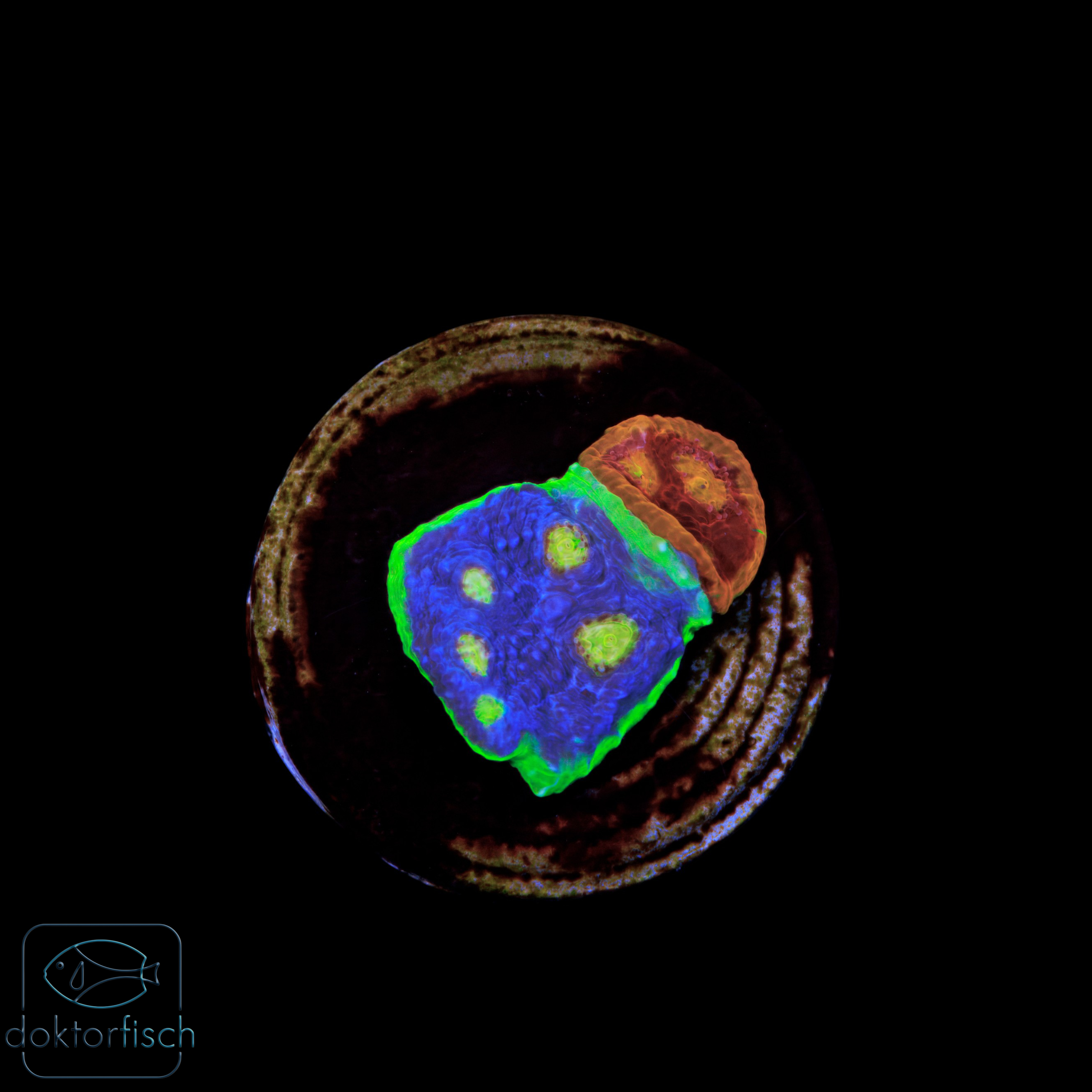 Wie alle unsere Ableger sind die Schnittstellen ausgeheilt. Sie erhalten die Koralle auf einem Ablegerstein.