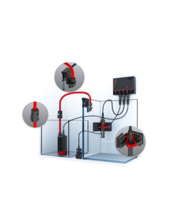 Der schlanke Wasserstandssensor (EC-Technologie) besitzt mehrere Eingänge, einer Titansonde und integriertem Digitalthermometer mit einer genauigkeit von 0,1 Grad. Die ATO-Pumpe ist leise und wartungsfähig mit variablem Durchfluss (6-10 W), einem Durchmesser von 4,5 cm, einem maximalen Durchfluss von 300 l/h und einer maximalen Förderhöhe von 2,5 m. Der hochempfindliche REEF-SPEC-Leckdetector mit Titansonde für RO und Meerwasser löst Benachrichtigungen an die App mit optimalem akustischem Alarm aus. Der Mikroprozessor des Smart-Controller überwcht und steuert zuverlässig alle Komponenten und verbindet sie mit dem ReefBeat-Ökosystem.