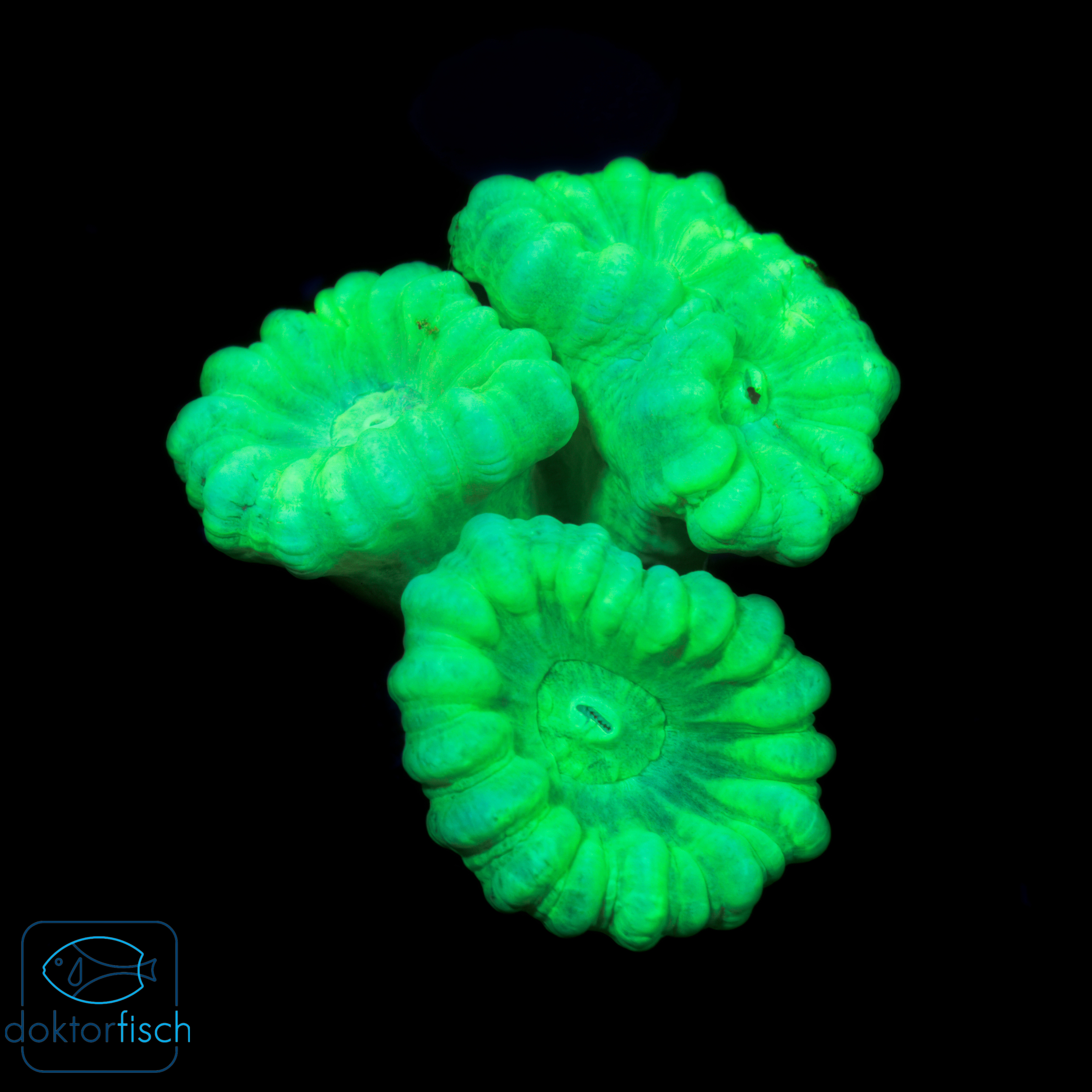 Die Caulastrea furcata green 3 heads ist eine robuste LPS Koralle. Sie wächst verzweigt und dicht zusammen. Mit ihren leuchtend grünen Polypen lässt sie jedes Riffaquarium mit neuem Glanz erstrahlen. Darüber hinaus ist diese Koralle auch leicht zu halten und vermehrt sich durch Teilung, wodurch sie langsam, aber stetig größer wird!