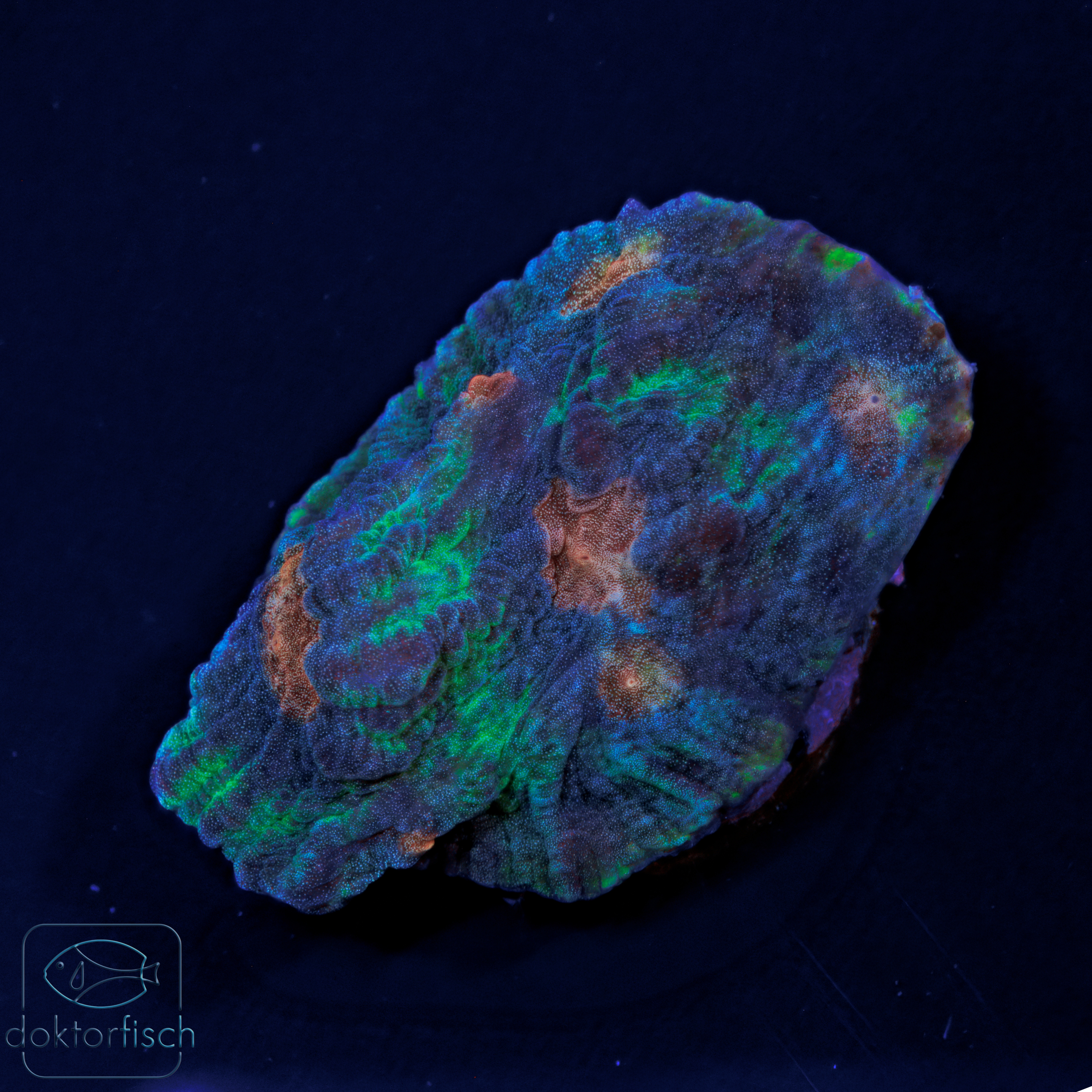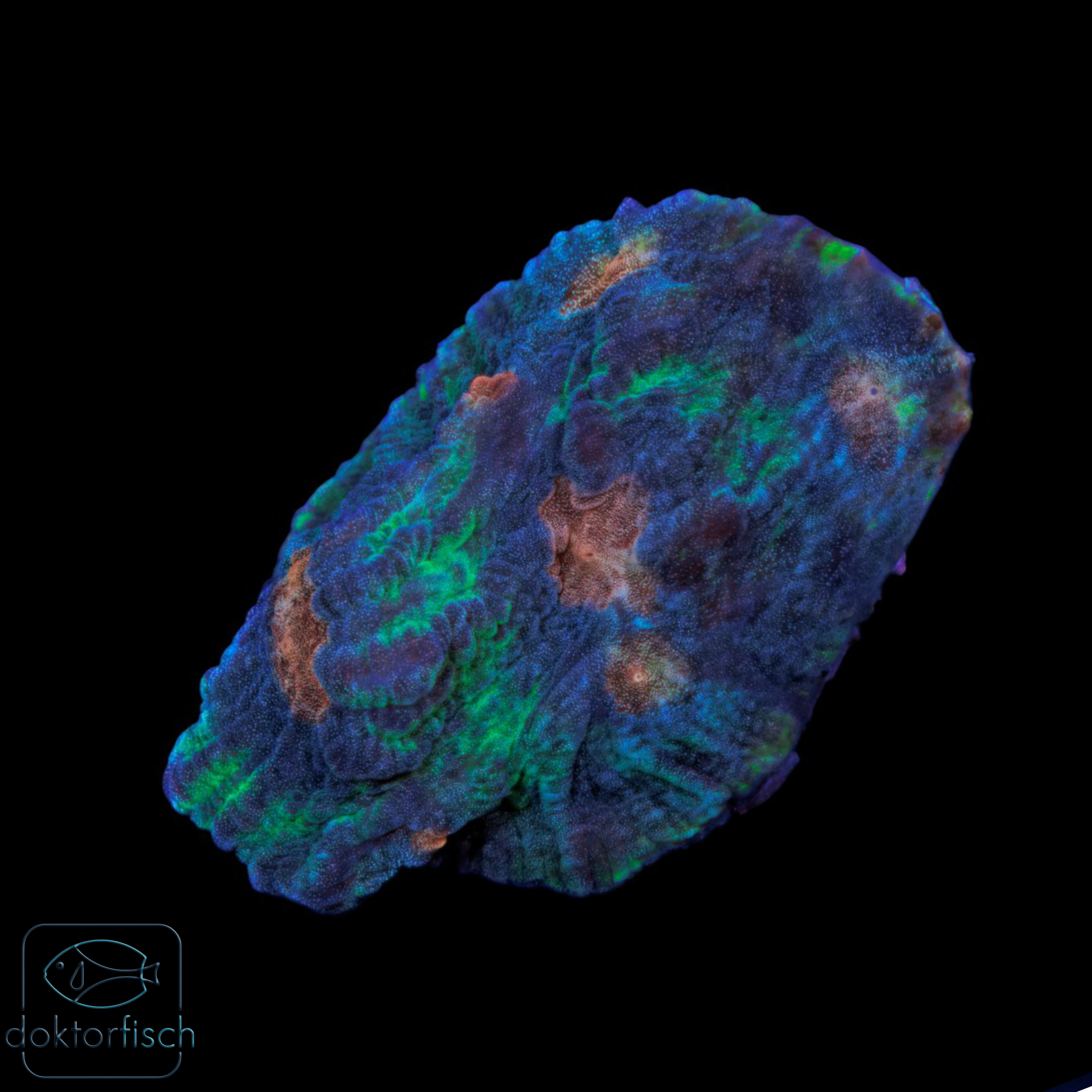 Die Chalice Rainbow ist eine farbintensive Koralle mit auffälligen Blau-, Grün- und Orangetönen, die im Riffaquarium schnell zum Blickfang wird. Zudem bevorzugt sie moderates Licht und sanfte Strömung und zeigt bei stabilen Wasserwerten eine kräftige Färbung. Ihr Wachstum ist zwar eher langsam, dennoch bleibt es konstant. Mit gelegentlicher Fütterung entwickelt sie außerdem noch intensivere Farben.